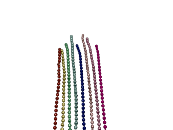 This ball chain is available in eight different colours, featuring a range of rich metallic finishes. These shades are perfect for adding detail and texture to jewellery and craft designs.