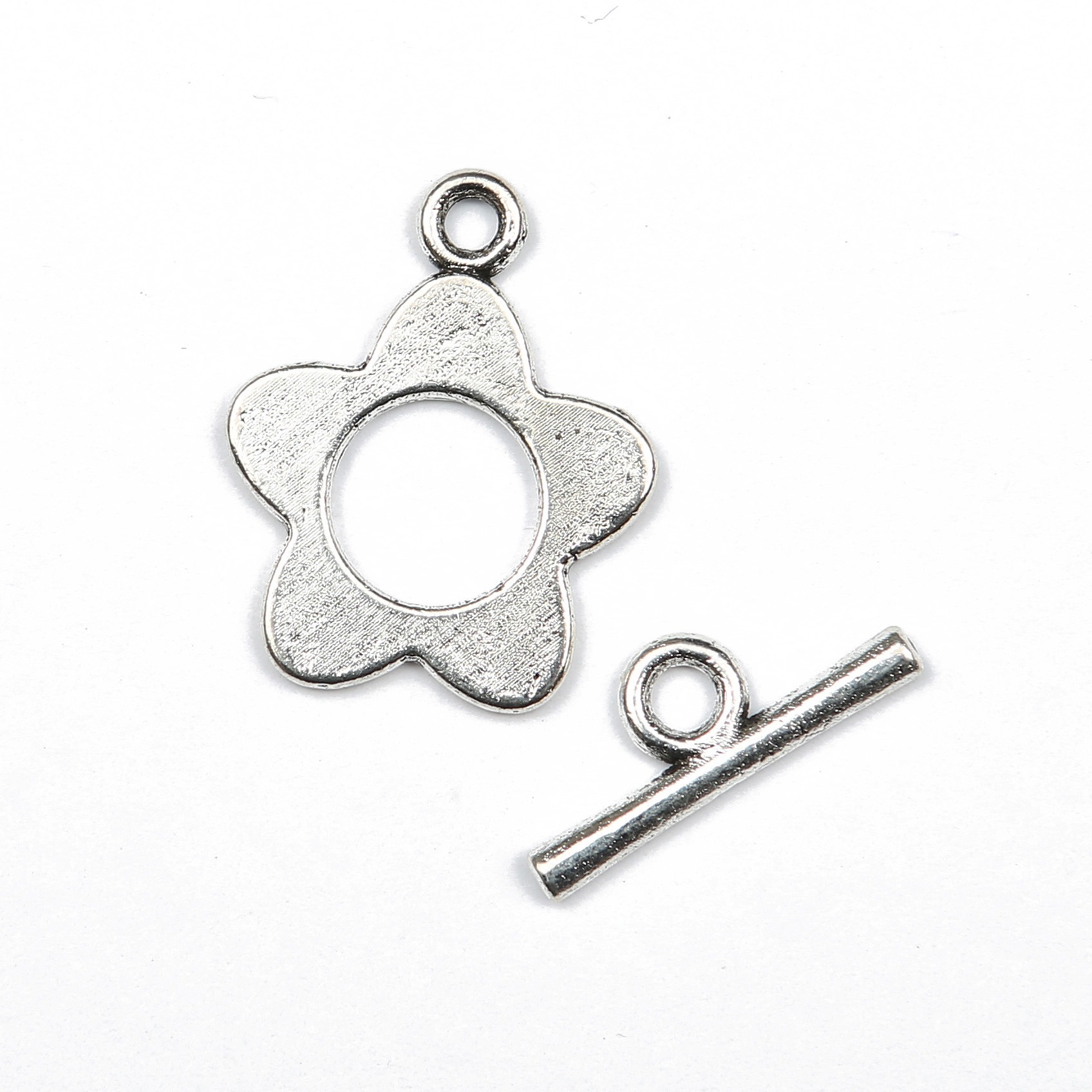 16x20mm Daisy Toggle Clasp in Silver Plated make a popular clasp choice for jewellery making projects. This flower toggle and bar clasp attaches either side of the finished jewellery making design for a decorative and secure finish.