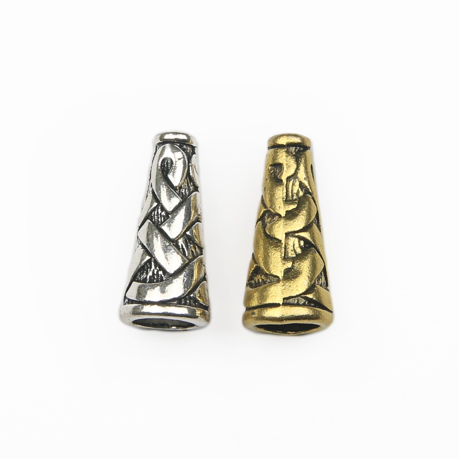 18mm  Cone Caps add a decorative finish to beading project. Cones also make the perfect end cap to Kumihimo projects allowing wire to be added through the hole to make a bespoke finding. These cones are great to use as skirts for beaded angel charms too.  Also available in gold and silver plated bead caps.