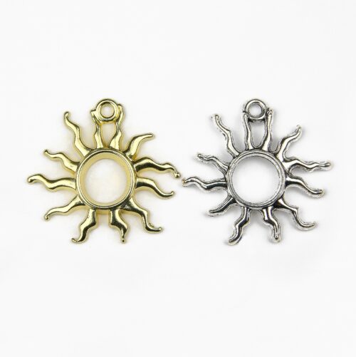 These lovely Aperture Sun Charms are metal. They would make a great addition to many beading or craft projects. These charms are perfect to coordinate with beads or use on their own in a jewellery make. They are great to use as a topper on a card or mounted in a scrapbook to complete a page. Using these charms in your craft or bead projects allows you to personalise your piece.