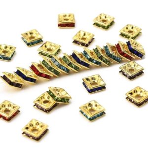 Add a touch of sparkle to your jewellery designs with these Diamante Square Spacer Beads in a Gold Mix finish. Featuring a gold-tone base set with multi-colour diamantes, these beads are perfect for adding shine, colour, and texture to handmade jewellery and craft projects.