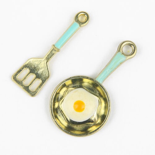 Add a fun, kitchen-themed touch to your jewellery and craft projects with this enamel frying pan and spatula charm pack. This set includes one frying pan charm and one spatula charm, both finished with smooth enamel and fine detail.