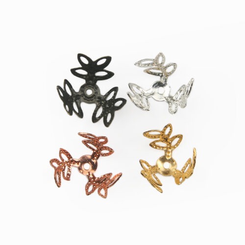 filigree Leaf Bead Cap add a decorative finish to beading project & prevent large beads falling off of head pins. They make beautiful embellishments for angel charms too. The adjustable leaves enable moulding around the bead for a stunning filigree look on beading projects. Also available in rose gold, gold and silver plated bead caps.