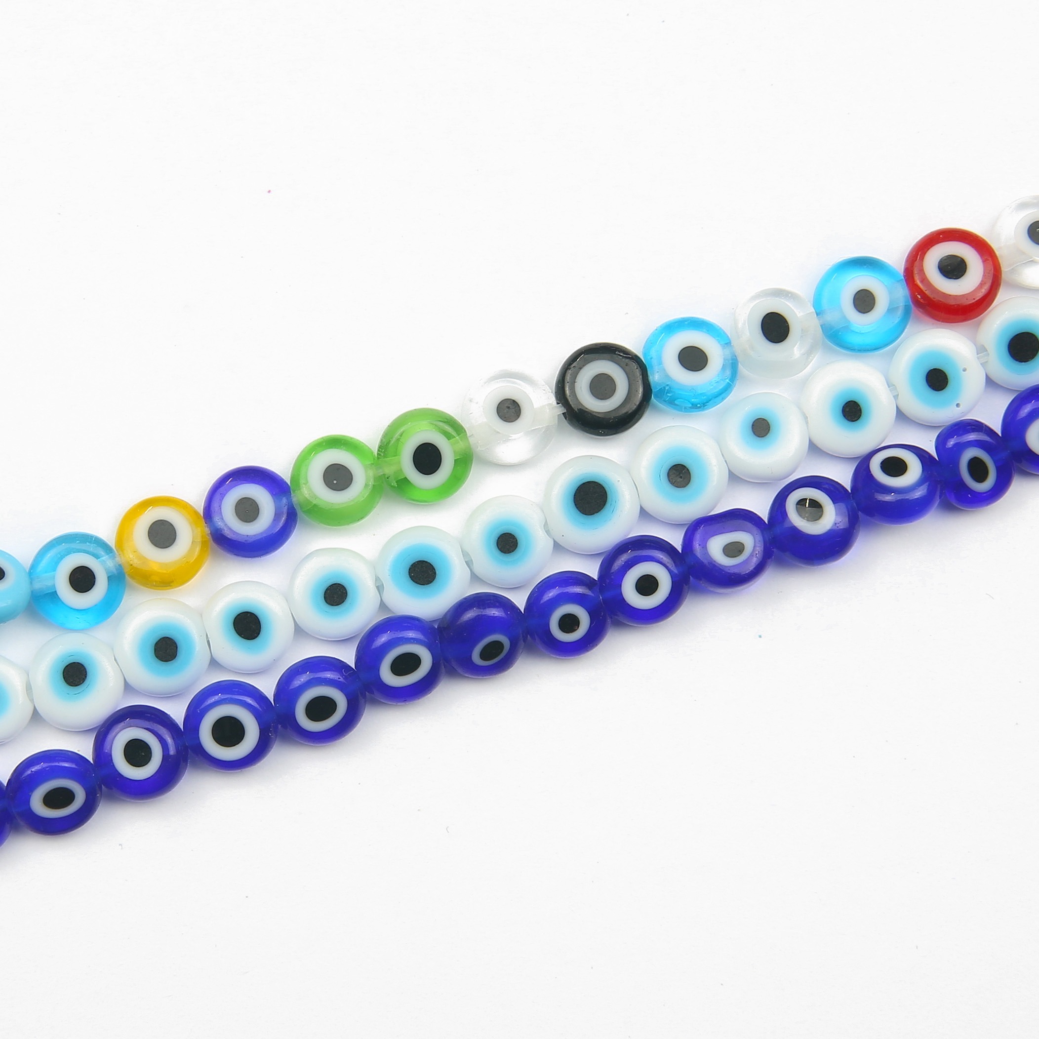 Glass Lamp work Evil Eye Beads – 6 × 2.5 mm – 1 mm Hole – Approx. 64 Beads per Strand – Multiple Colour Options