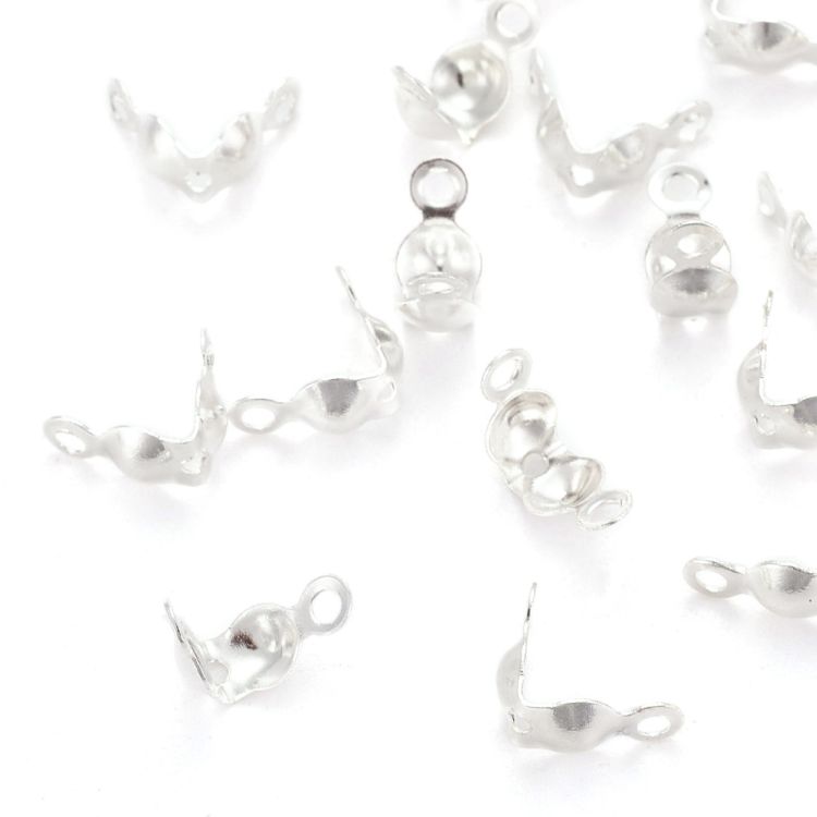 Silver Plated Clam Shell Clasps, also known as calottes or necklace ends, are a great way to finish the ends of various handmade jewellery projects. Giving a much neater finish than simply fastening around a jump ring or clasp and so give a nice professional look at minimum expense. They also protect stringing material against chaffing to help jewellery creations last longer.