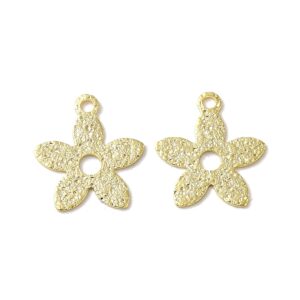 Add subtle detail to your jewellery designs with this small textured flower head charm, sold in packs of 10. Available in a gold or silver finish, these charms feature a gentle textured surface that adds interest without overpowering your design.